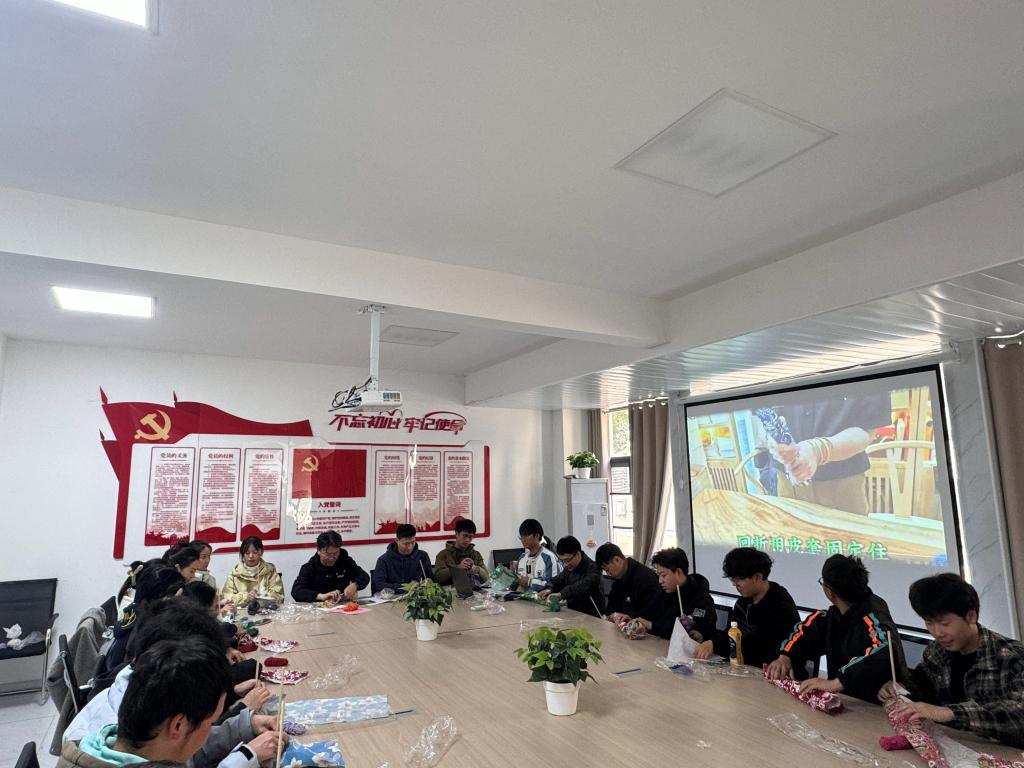 随后,活动进入艾草锤制作体验环节。在指导老师的示范下,同学们将晒干的艾草叶精心揉捏成团,细心包裹,再用丝线缠绕固定,一个个充满传统韵味的艾草锤在同学们手中诞生。来自藏族的同学巴桑次仁兴奋地说:“亲手制作艾草锤,让我感受到了中华传统文化的博大精深,这是我们各民族共同的精神财富。”