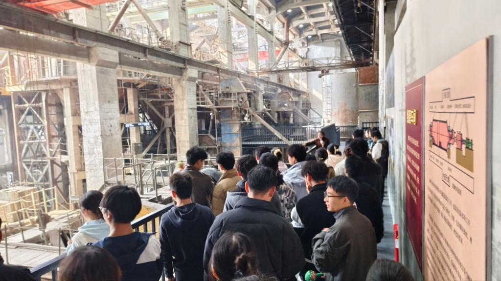 最后,师生们一同乘车前往黄石华新1907文化公园进行实地参观。这座由百年水泥厂改造而成的文化公园,见证了中国近代工业的发展历程。在讲解员的引导下,师生们参观了水泥烧制的车间和机器等工业遗址,深切感受到了中华民族工业发展的艰辛历程。
