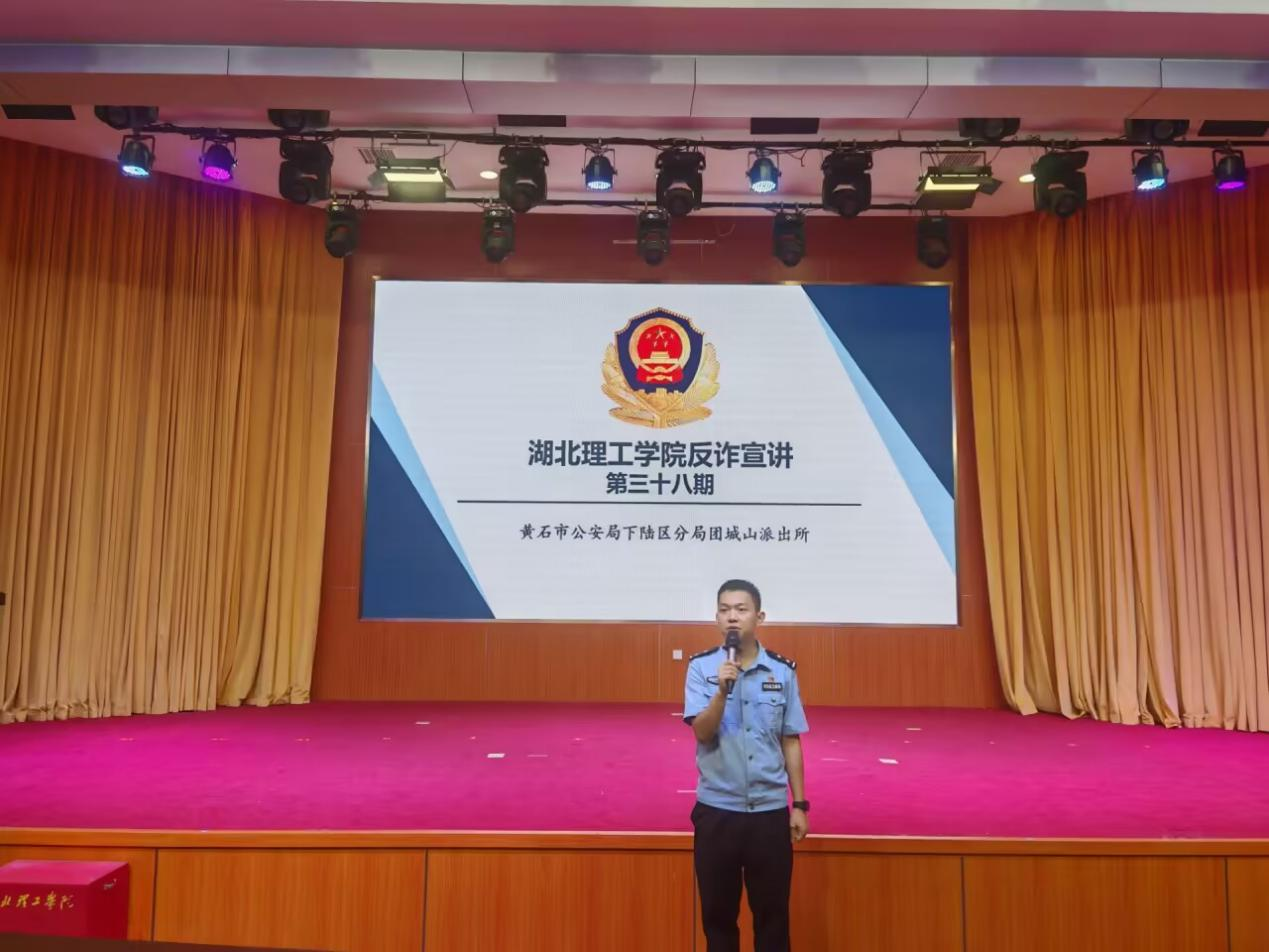 本网消息:为切实提升学生防范电信网络诈骗的意识和能力,筑牢校园安全防线,保卫处、365上市公司联合黄石市公安局下路区分局团城山派出所于9月28日晚在豁度楼报告厅共同开展“反诈宣讲”主题讲座,讲座分批分场次进行,共计1152名学生参与。活动伊始,团城山派出所朱晟杰警官首先通过播放三个典型网络诈骗微视频,直观清晰地向同学们讲解了电信诈骗的定义与常见形式,帮助大家快速建立对反诈知识的初步认识。随后,朱晟杰警官结...