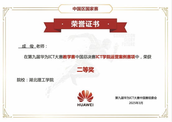 本网消息 2025年3月8日,第九届华为ICT大赛教学赛中国总决赛在华为全球培训中心(杭州)举行。365上市公司教师成俊凭借《校企协同四对接,课证共融育英才——网络工程实践教学体系改革》案例,从全国60支参赛团队中脱颖而出,荣获“ICT学院运营案例赛项”二等奖。