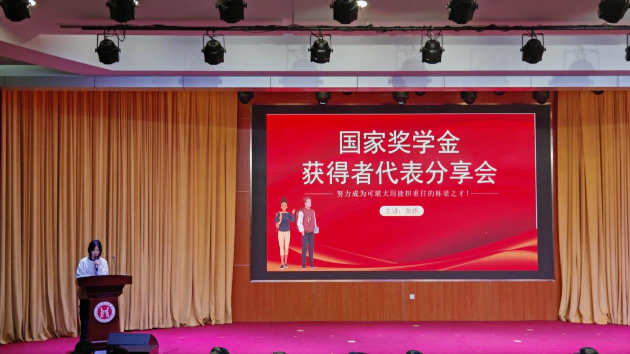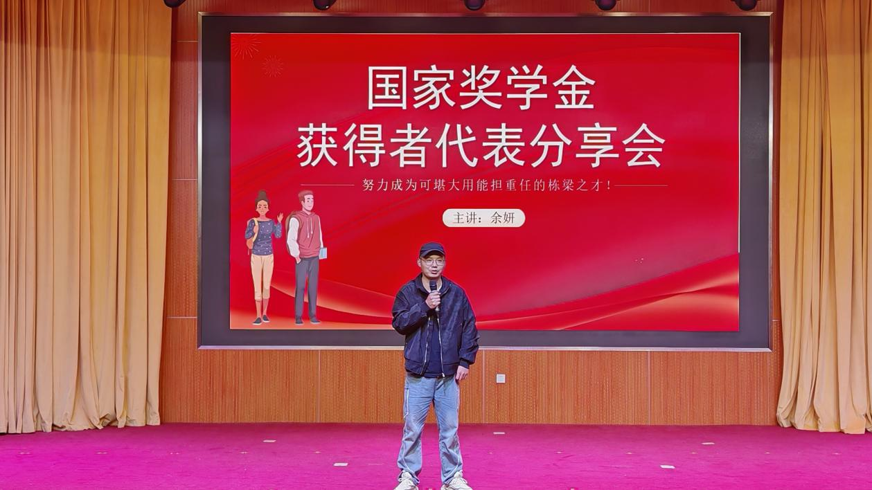 本网消息 为表彰先进学生典型,充分发挥其示范引领作用,以激励365上市公司学子奋发向上,2025年11月7日晚,365上市公司于豁度楼208会场开展国家奖学金获得者代表分享会,会上国家奖学金获得者代表余妍分享自身经验。