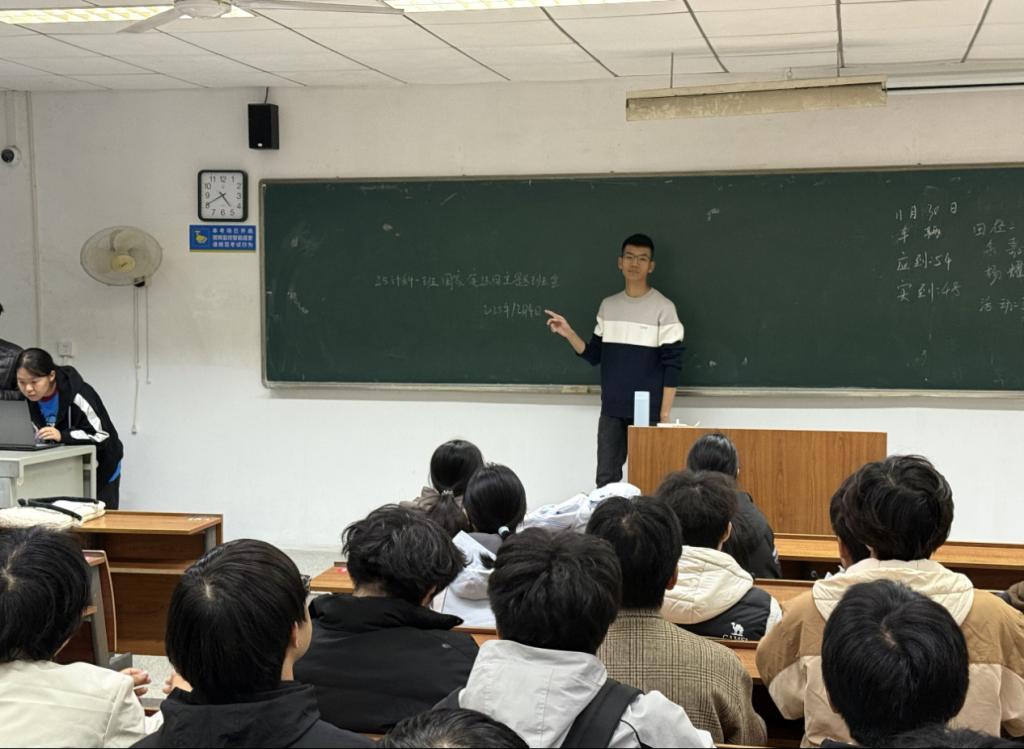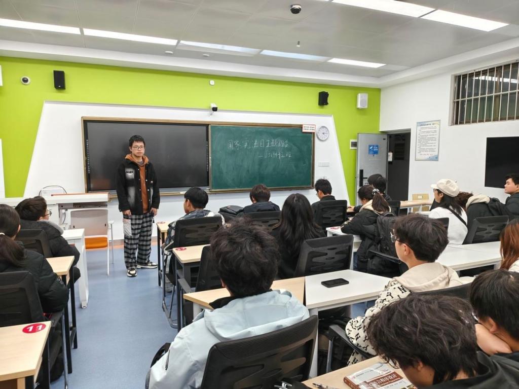 晨读结束后,各班级接续开展了形式生动的宪法主题班会。班会设置了“宪法知识抢答”“法治情景讨论”等互动环节,将宪法常识、网络安全法与“学术诚信”“网络言论边界”等现实议题紧密结合。部分班级还聚焦“知识产权保护与代码规范”展开专业探讨,引导同学们在专业起步阶段就筑牢学术法治意识,恪守法律底线。